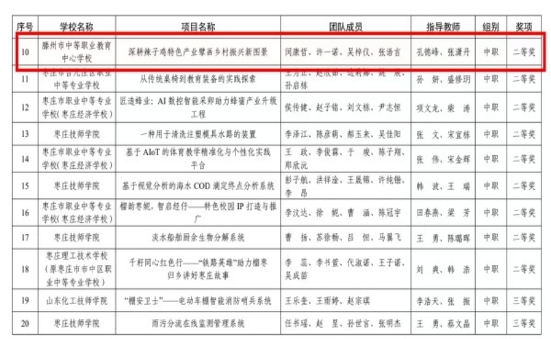 喜報!滕州市中等職業教育中心學校學子在第二屆棗莊市黃炎培職業教育創新創業大賽中職組獲佳績!